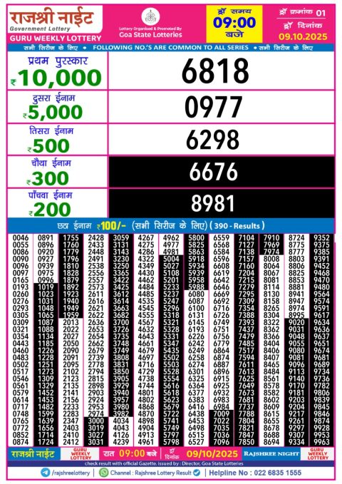 Rajshree Lottery Result 5:40 PM – 10 October 2025 – Live Draw & Winners
