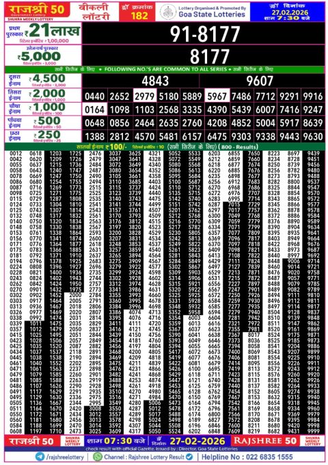 Rajshree 50 Lottery Result Today 7:30 PM – 27 February 2026 – Live Draw
