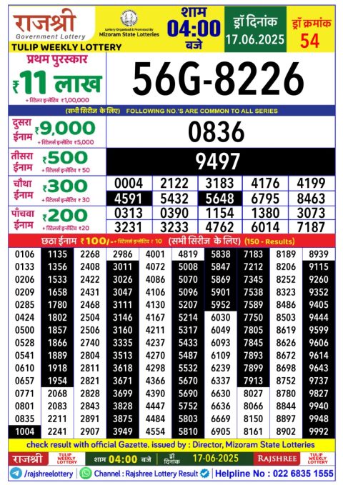 Rajshree Lottery Result Today 4 PM – 17 June 2025 – Live Draw & Winners
