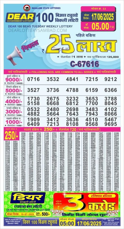 Dear 100 Lottery Result 5 PM Today – 17 June 2025 – Live Draw & Winners
