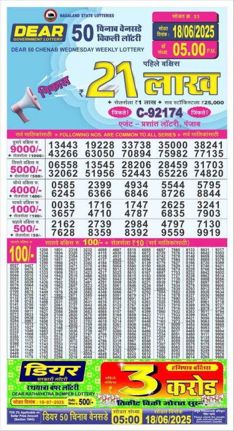Dear 50 Lottery Result 5 PM Today – 18 June 2025 – Live Draw & Winners