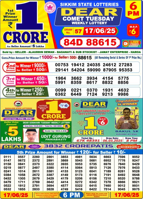 Dear Lottery Result 6 PM – 17 June 2025 – Live Draw & Winners