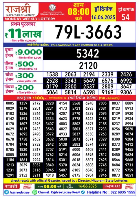 Rajshree Lottery 8 PM Result – 16 June 2025 – Live Draw & Winners