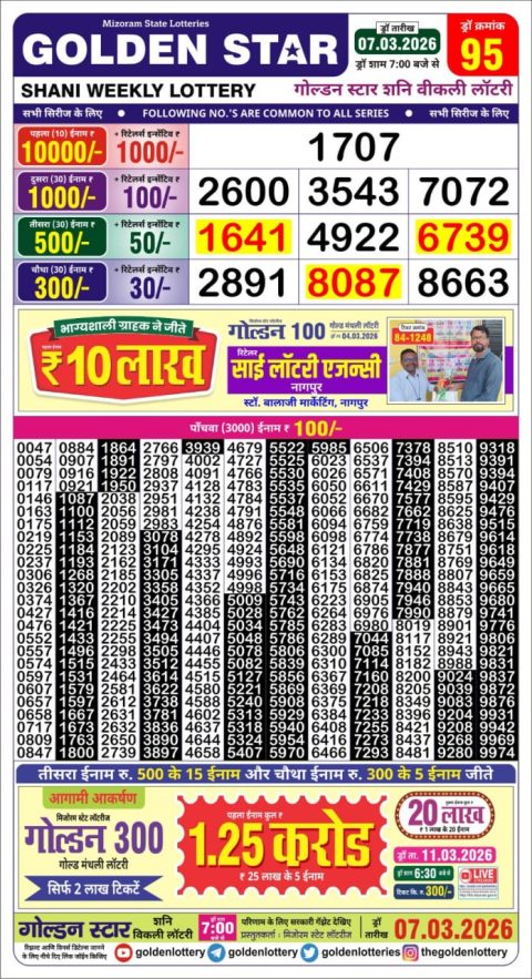 Golden Star Lottery Result 7 PM Today – 10 February 2026 – Live Draw & Winners