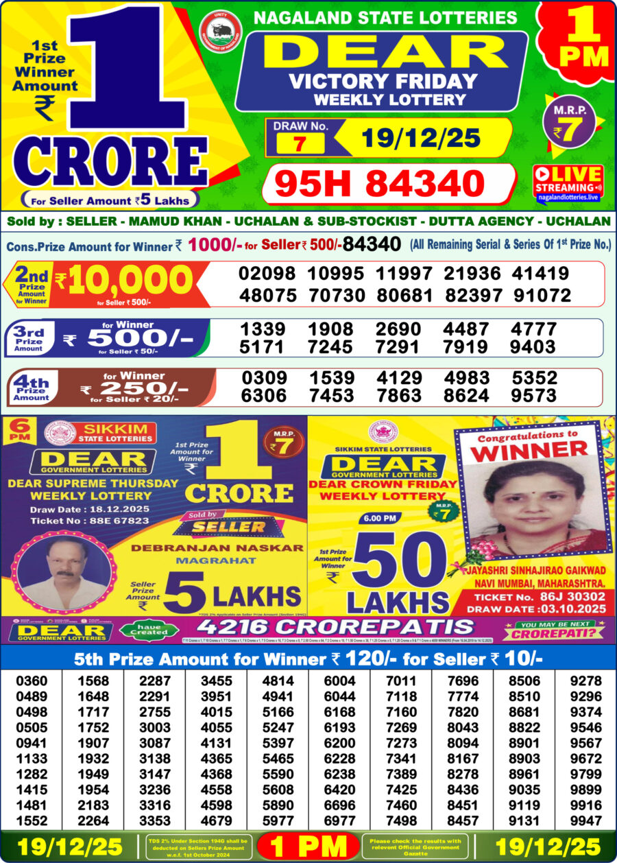 Dear Lottery 1 PM Result Today – 19 December 2025 – Live Draw & Winners December 19, 2025 Related Results Rajshree Lottery Result 1 PM – 18 August 2025 – Live Draw & Winners Dear Lottery 1 PM Result Today – 04 October 2025 – Live Draw & Winners Dear Lottery 1 PM Result Today – 10 September 2025 – Live Draw & Winners Dear Lottery 1 PM Result Today – 16 August 2025 – Live Draw & Winners