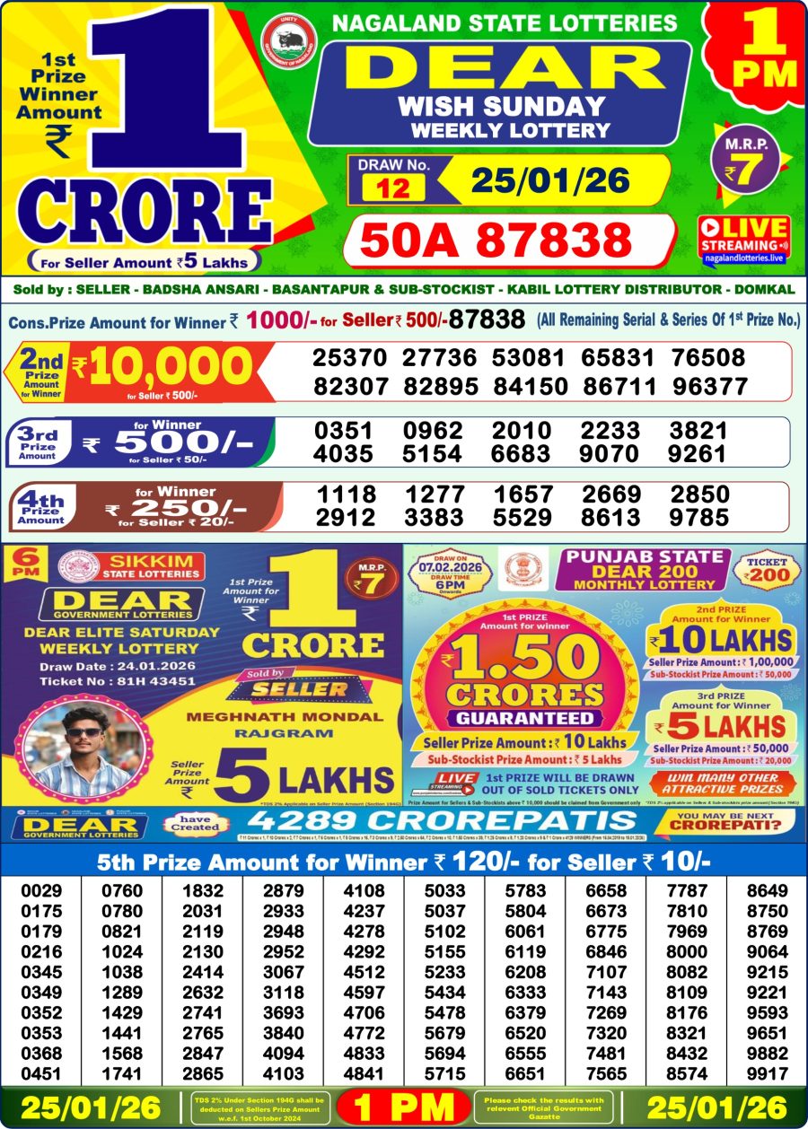 Dear Lottery 1 PM Result Today – 25 January 2026 – Live Draw & Winners January 25, 2026 Related Results Dear Lottery 1 PM Result Today – 18 October 2025 – Live Draw & Winners Dear Lottery 1 PM Result Today – 3 December 2025 – Live Draw & Winners Dear Lottery 1 PM Result Today – 30 August 2025 – Live Draw & Winners Rajshree Lottery Result 1 PM – 30 November 2025 – Live Draw & Winners