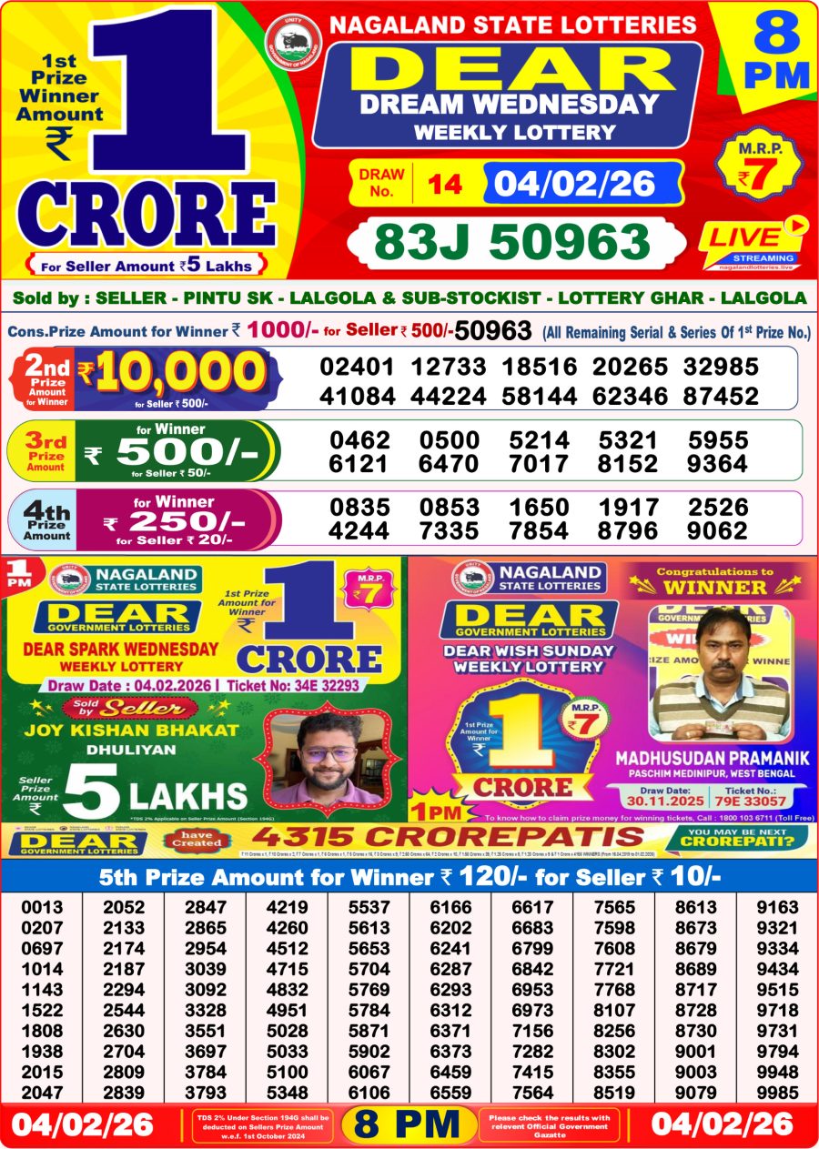 Dear Lottery 8 PM Result – 04 February 2026 – Live Draw & Winners February 4, 2026 Related Results Rajshree Lottery 8 PM Result – 24 November 2025 – Live Draw & Winners Dear Lottery 8 PM Result – 14 August 2025 – Live Draw & Winners Dear Lottery 8 PM Result – 01 October 2025 – Live Draw & Winners Dear Lottery 8 PM Result – 30 November 2025 – Live Draw & Winners