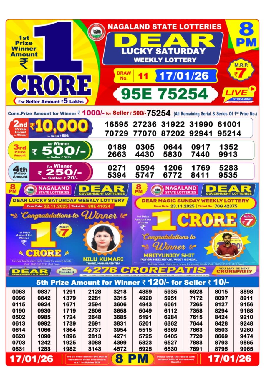 Dear Lottery 8 PM Result – 17 January 2026 – Live Draw & Winners January 17, 2026 Related Results Dear Lottery 8 PM Result – 13 January 2026 – Live Draw & Winners Rajshree Lottery 8 PM Result – 02 August 2025 – Live Draw & Winners Rajshree Lottery 8 PM Result – 21 July 2025 – Live Draw & Winners Rajshree Lottery 8 PM Result – 18 August 2025 – Live Draw & Winners