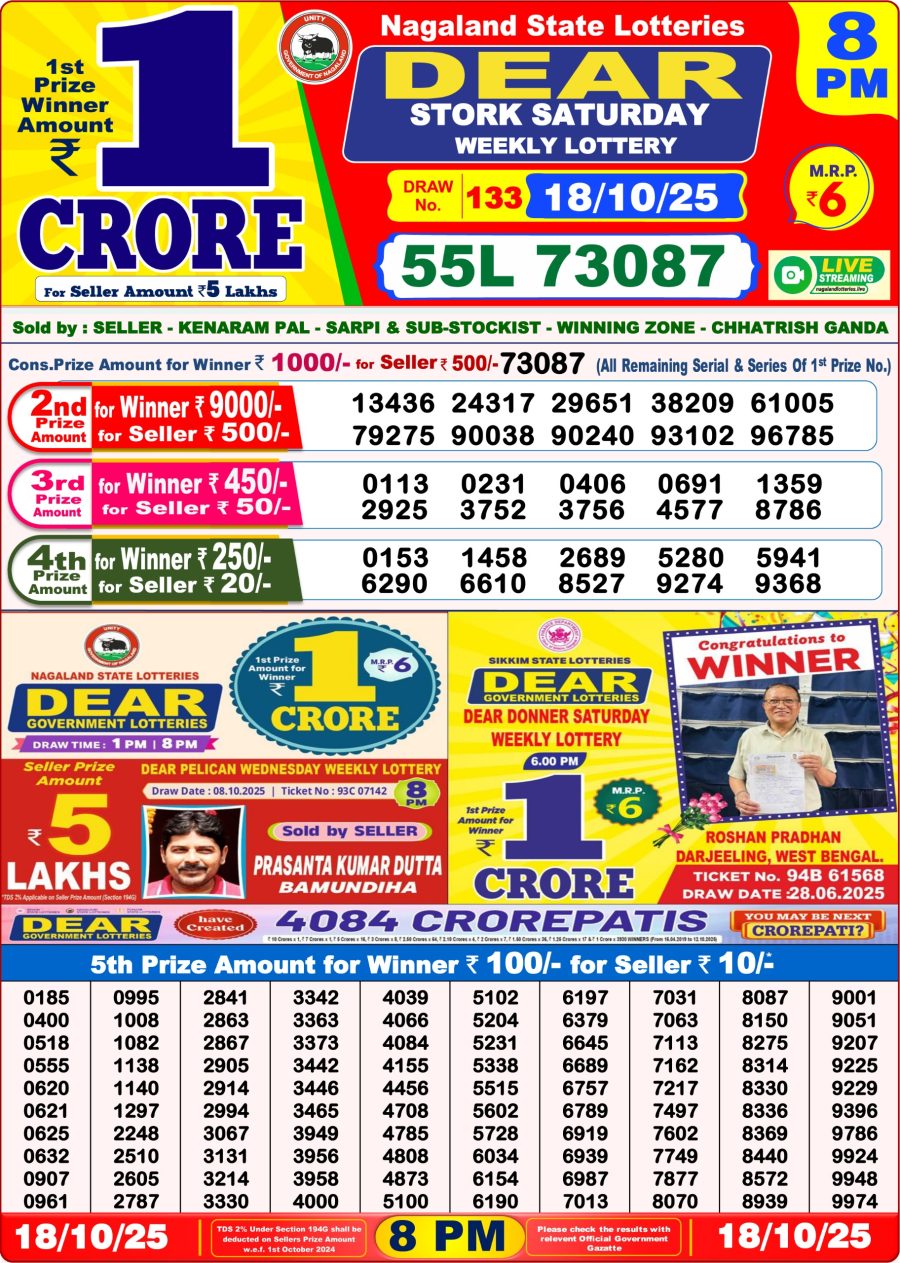 Dear Lottery 8 PM Result – 18 October 2025 – Live Draw & Winners October 18, 2025 Related Results Dear Lottery 8 PM Result – 27 July 2025 – Live Draw & Winners Dear Lottery 8 PM Result – 19 July 2025 – Live Draw & Winners Rajshree Lottery 8 PM Result – 10 July 2025 – Live Draw & Winners Dear Lottery 8 PM Result – 13 October 2025 – Live Draw & Winners