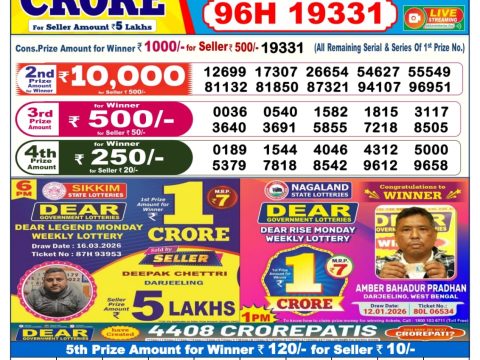 Dear Lottery Result 6 PM – 12 January 2026 – Live Draw & Winners January 12, 2026 Related Results Dear Lottery Result 6 PM – 17 March 2026 – Live Draw & Winners Dear Lottery Result 6 PM – 16 March 2026 – Live Draw & Winners Dear Lottery Result 6 PM – 28 February 2026 – Live Draw & Winners Dear Lottery Result 6 PM – 15 March 2026 – Live Draw & Winners