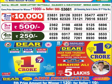 Dear Lottery Result 6 PM – 20 March 2026 – Live Draw & Winners March 20, 2026 Related Results Dear Lottery Result 6 PM – 11 June 2025 – Live Draw & Winners Dear Lottery Result 6 PM – 08 October 2025 – Live Draw & Winners Dear Lottery Result 6 PM – 12 November 2025 – Live Draw & Winners Punjab State Dear 50 Lottery Result – 6 PM Draw – 23 January 2026 – Live Draw & Winners