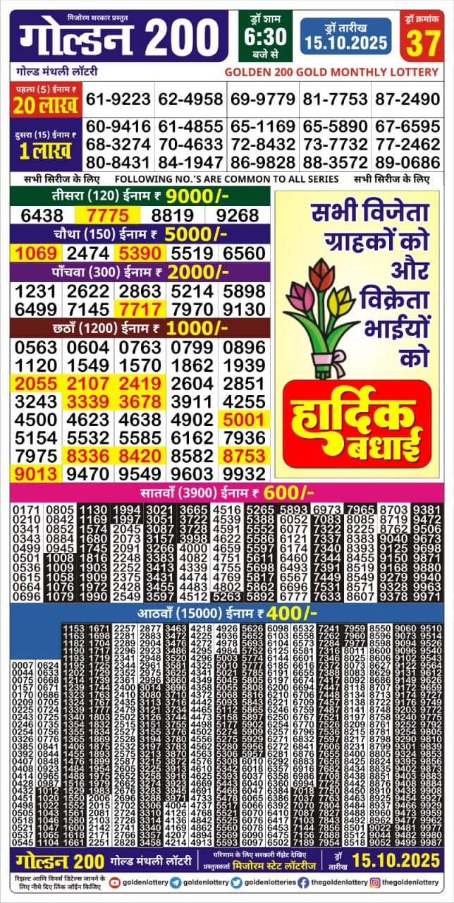 Golden 200 Monthly Lottery Result 15 October 2025 October 15, 2025 Related Results Golden Star Lottery Result 9 PM Today – 20 October 2025 – Live Draw & Winners Golden 100 Monthly Lottery Result 06.08.2025 Live Draw & Winners Golden Star Lottery Result 9 PM Today – 10 October 2025 – Live Draw & Winners Golden Star Lottery Result 9 PM Today – 30 September 2025 – Live Draw & Winners