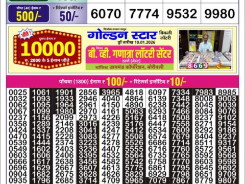 Golden Star Lottery Result 9 PM Today – 09 January 2026 – Live Draw & Winners January 9, 2026 Related Results Golden Star Lottery Result 9 PM Today – 11 January 2026 – Live Draw & Winners Golden Ganpati bumper lottery result 1 september 2025 Golden 100 gold monthly lottery result 04 May 2025 Golden Star Lottery Result 9 PM Today – 02 November 2025 – Live Draw & Winners