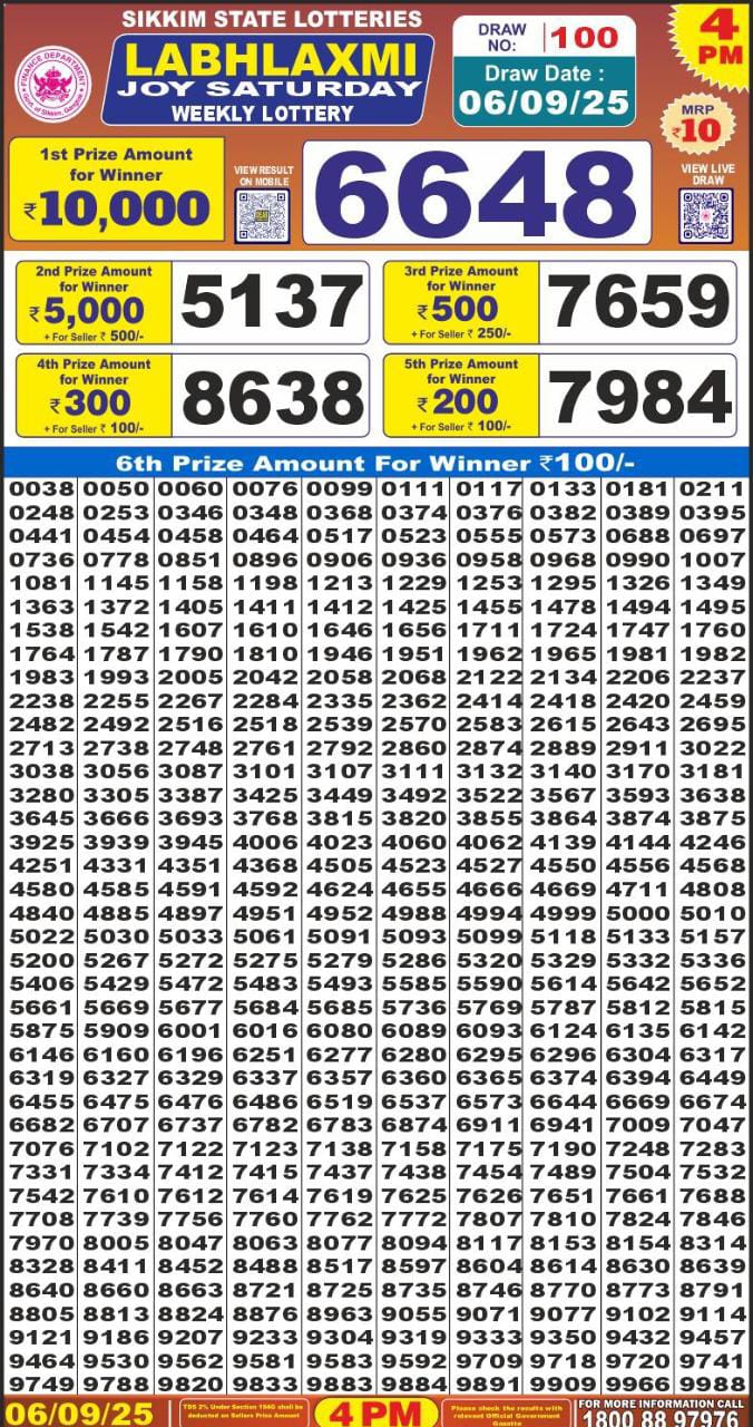 Labh Laxmi Lottery Result Today 4 PM – 6 September 2025 – Live Draw & Winners September 6, 2025 Related Results LabhLaxmi Lottery Result Today 4 PM – 19 October 2025 – Live Draw & Winners Labh Laxmi Lottery Result Today 4 PM – 07 July 2025 – Live Draw & Winners Labh Laxmi Lottery Result Today 4 PM – 19 May 2025 – Check Winner List Labh Laxmi Lottery Result Today 4 PM – 31 July 2025 – Live Draw & Winners