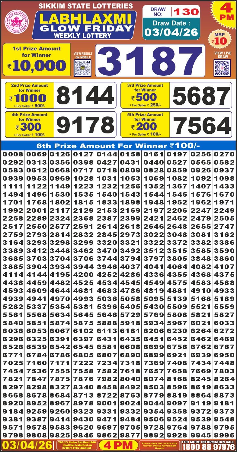 LabhLaxmi Lottery Result Today 4 PM – 03 April 2026 – Live Draw & Winners April 3, 2026 Related Results LabhLaxmi Lottery Result Today 4 PM – 28 February 2026 – Live Draw & Winners Rajshree Lottery Result Today 4 PM – 31 August 2025 – Live Draw & Winners LabhLaxmi Lottery Result Today 4 PM – 14 October 2025 – Live Draw & Winners Rajshree Lottery Result Today 4 PM – 4 June 2025 – Live Draw & Winners