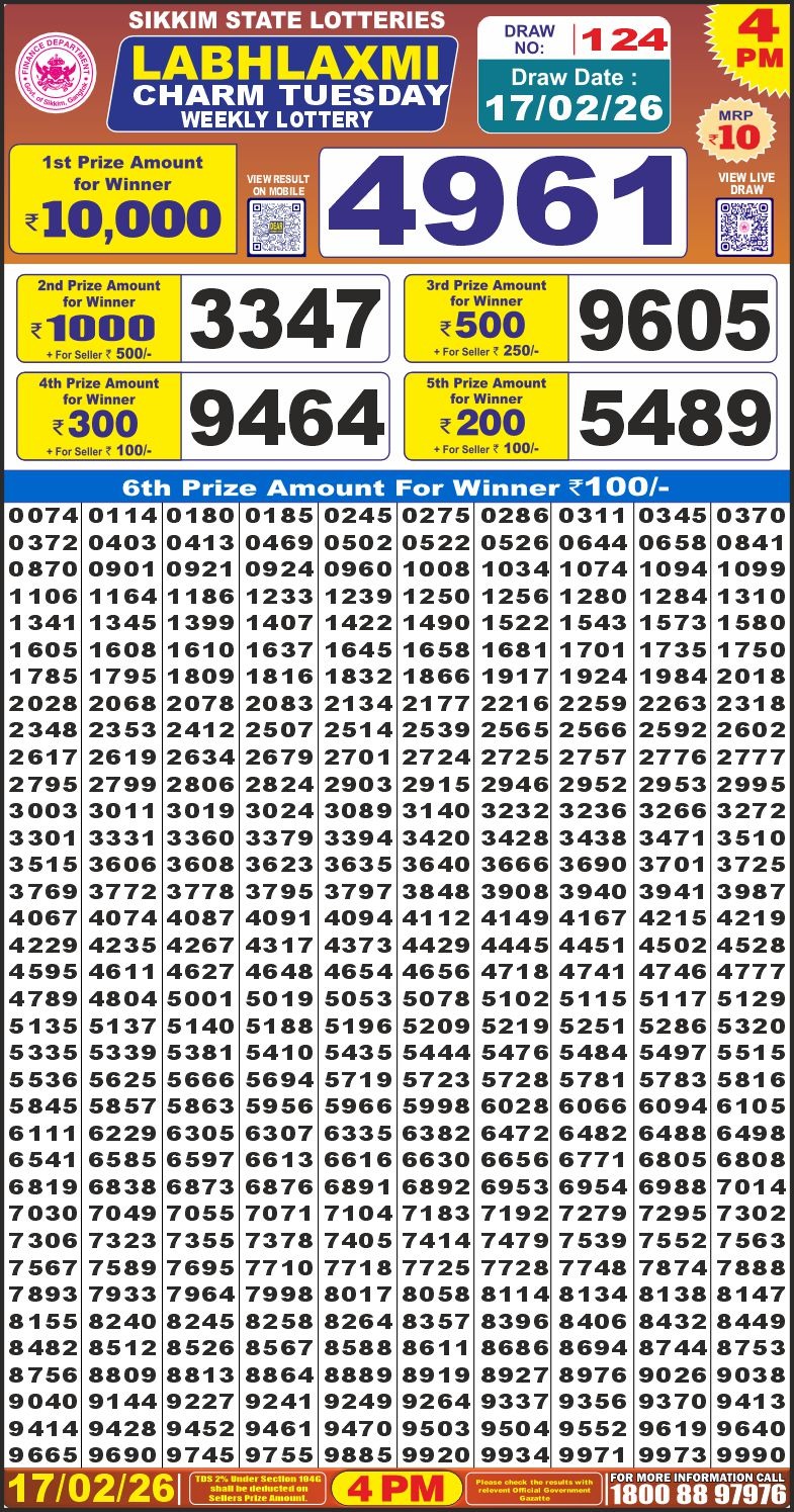LabhLaxmi Lottery Result Today 4 PM – 17 February 2026 – Live Draw & Winners February 17, 2026 Related Results Rajshree Lottery Result Today 4 PM – 14 June 2025 – Live Draw & Winners LabhLaxmi Lottery Result Today 4 PM – 23 October 2025 – Live Draw & Winners Rajshree Lottery Result Today 4 PM – 23 November 2025 – Live Draw & Winners Labh Laxmi Lottery Result Today 4 PM – 26 July 2025 – Live Draw & Winners