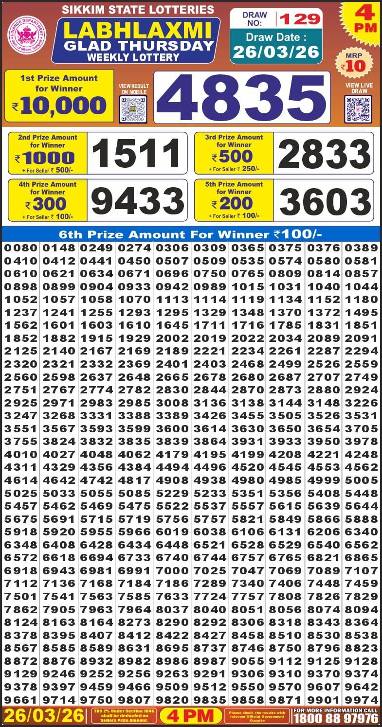 LabhLaxmi Lottery Result Today 4 PM – 26 March 2026 – Live Draw & Winners March 26, 2026 Related Results LabhLaxmi Lottery Result Today 4 PM – 05 February 2026 – Live Draw & Winners LabhLaxmi Lottery Result Today 4 PM – 09 January 2026 – Live Draw & Winners LabhLaxmi Lottery Result Today 4 PM – 06 October 2025 – Live Draw & Winners LabhLaxmi Lottery Result Today 4 PM – 22 September 2025 – Live Draw & Winners