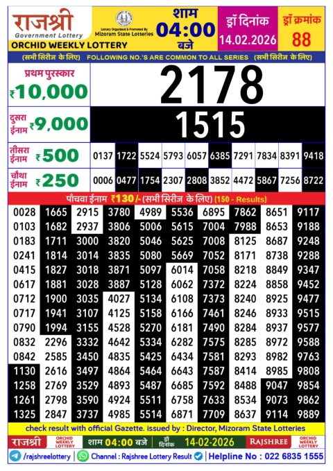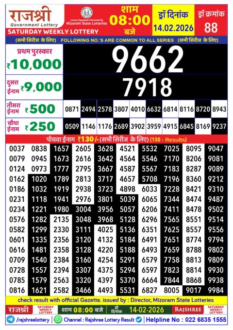 Rajshree Lottery Result 2.25 PM – 14 February 2026 – Live Draw & Winners