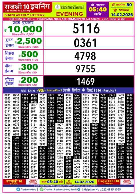 Rajshree Lottery Result 5:40 PM – 14 February 2026 – Live Draw & Winners