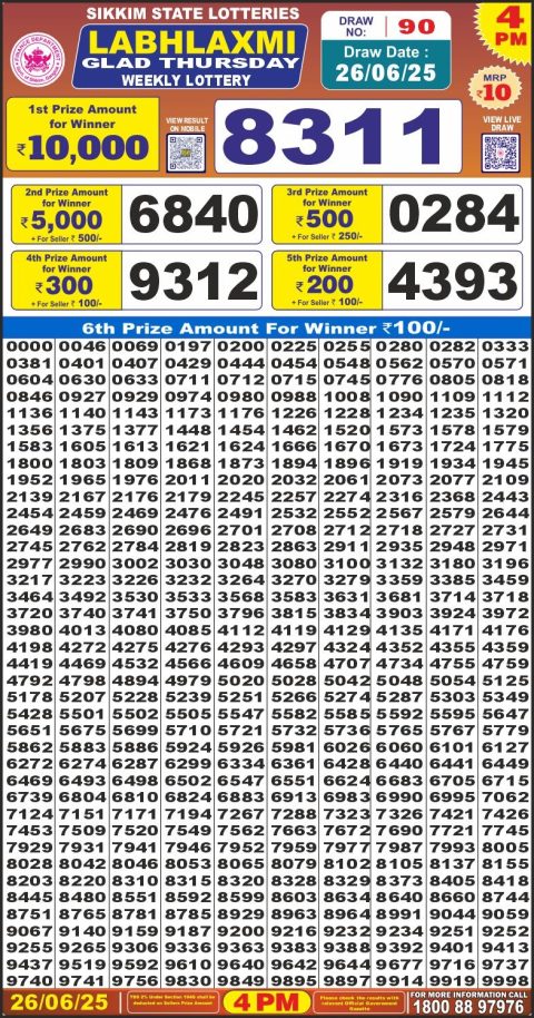Labh Laxmi Lottery Result Today 4 PM – 26 June 2025 – Live Draw & Winners