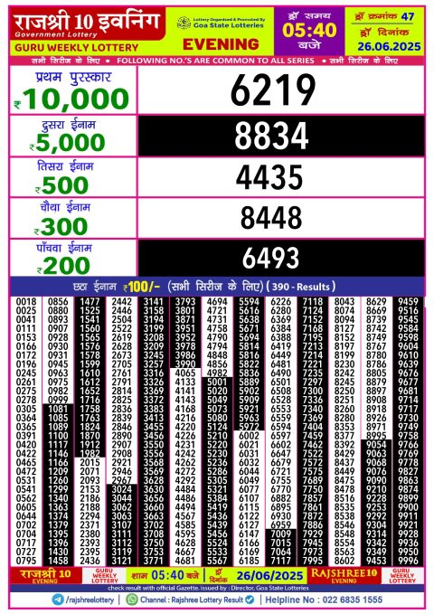 Rajshree Lottery Result 5:40 PM – 26 June 2025 – Live Draw & Winners