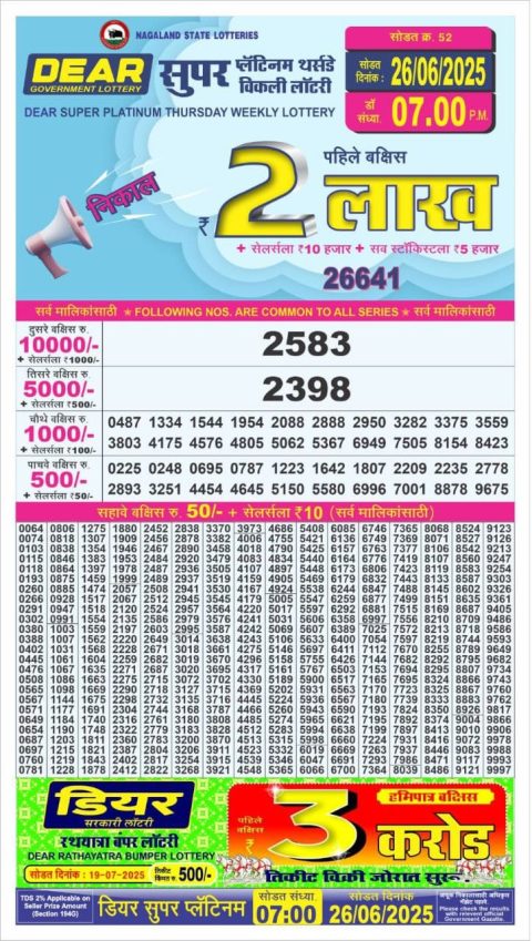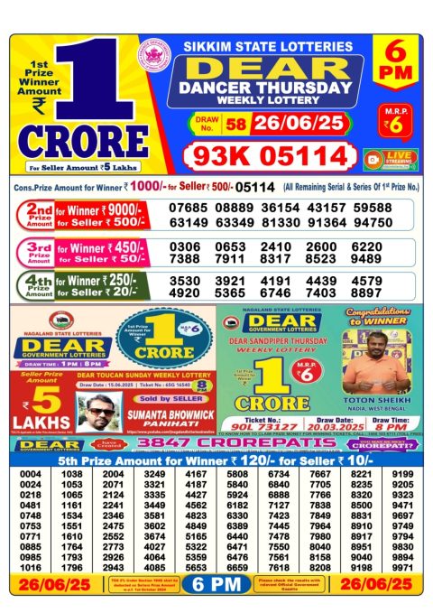 Dear Lottery Result 6 PM – 26 June 2025 – Live Draw & Winners