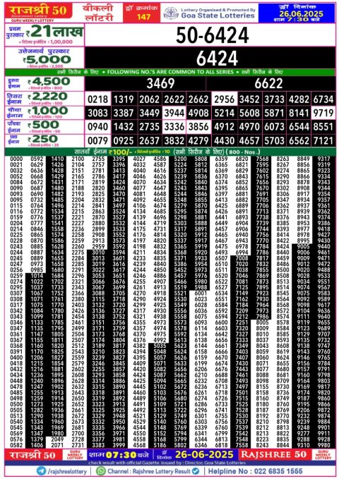 Rajshree 50 Lottery Result Today 7:30 PM – 26 June 2025 – Live Draw &