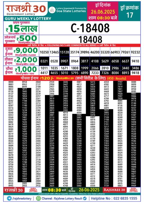 Rajshree 30 Lottery Result 8:30 PM – 26 June 2025 – Live Draw & Winners