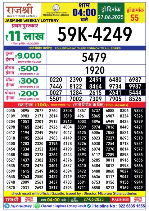 Rajshree Lottery Result Today 4 PM – 27 June 2025 – Live Draw & Winners