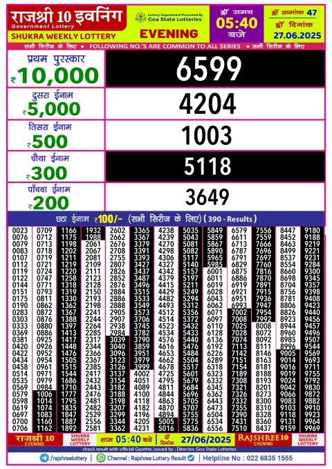 Rajshree Lottery Result 5:40 PM – 27 June 2025 – Live Draw & Winners