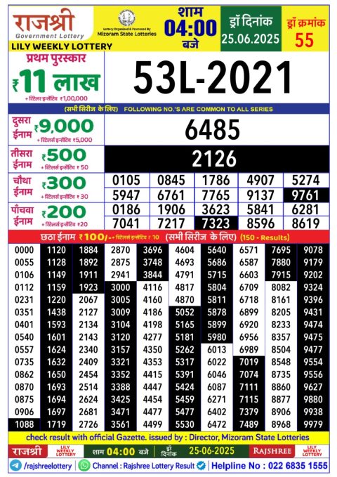 Rajshree Lottery Result Today 4 PM – 25 June 2025 – Live Draw & Winners