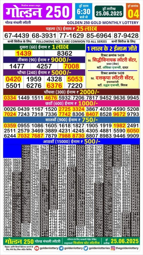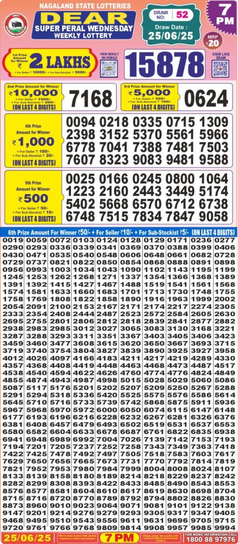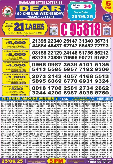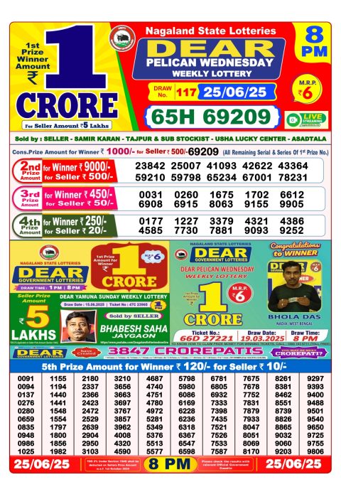 Dear Lottery Result 6 PM – 25 June 2025 – Live Draw & Winners