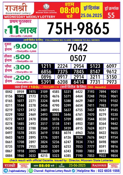Rajshree Lottery Result 1 PM – 25 June 2025 – Live Draw & Winners
