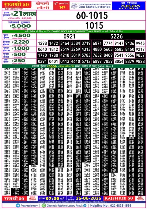 Rajshree 50 Lottery Result Today 7:30 PM – 25 June 2025 – Live Draw &