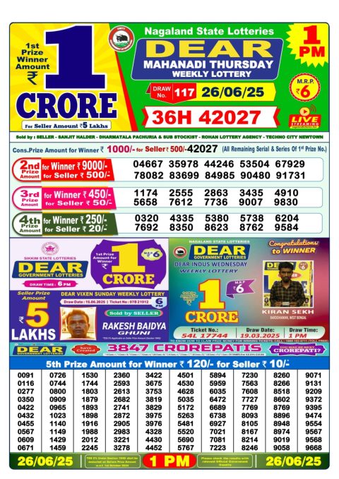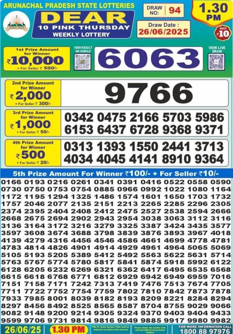Dear Lottery 1 PM Result Today – 26 June 2025 – Live Draw & Winners