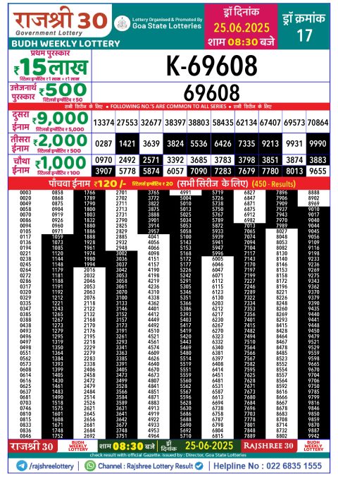 Rajshree 30 Lottery Result 8:30 PM – 25 June 2025 – Live Draw & Winners
