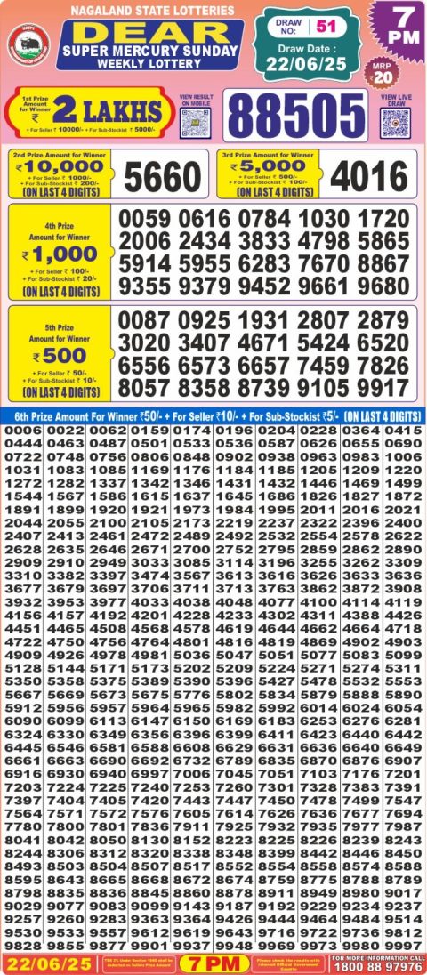 Dear Lottery Result 6 PM – 23 June 2025 – Live Draw & Winners