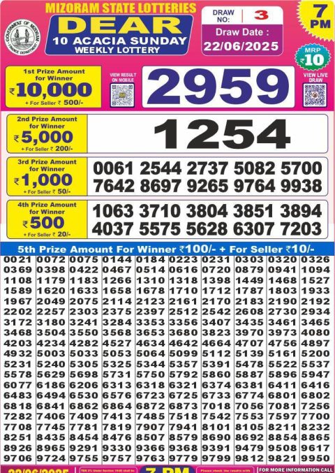 Dear 10 Lottery Result 7 PM Today – 22 June 2025 – Live Draw & Winners