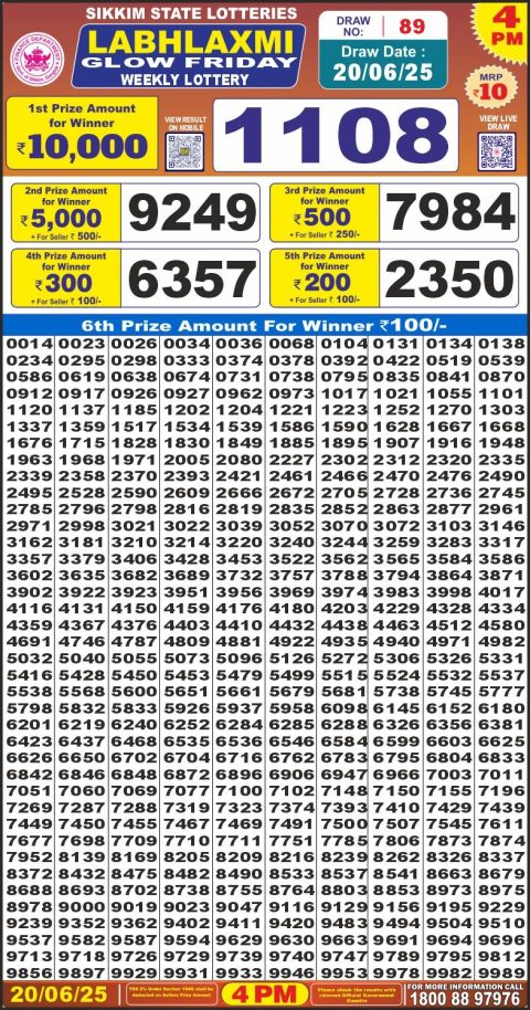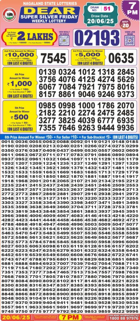 Dear Lottery Result 6 PM – 20 June 2025 – Live Draw & Winners