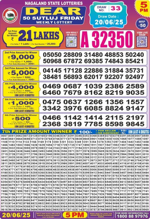 Dear 50 Lottery Result 5 PM Today – 20 June 2025 – Live Draw & Winners