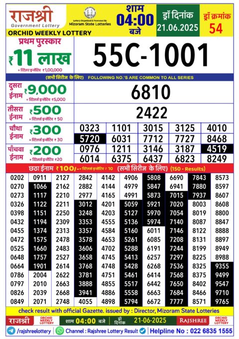Rajshree Lottery Result Today 4 PM – 21 June 2025 – Live Draw & Winners