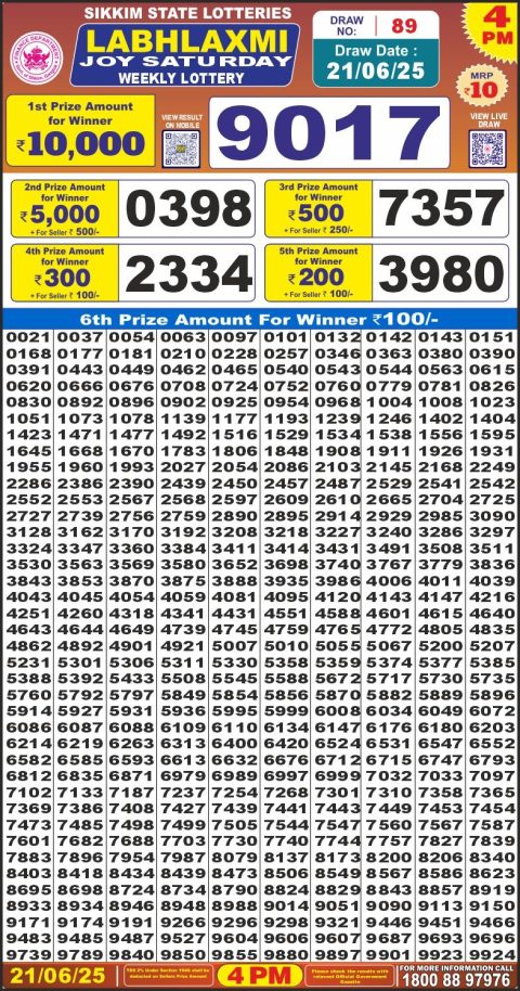 Labh Laxmi Lottery Result Today 4 PM – 21 June 2025 – Live Draw & Winners