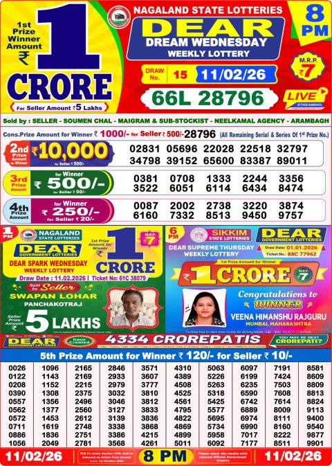 Dear Lottery Result 6 PM – 11 February 2026 – Live Draw & Winners