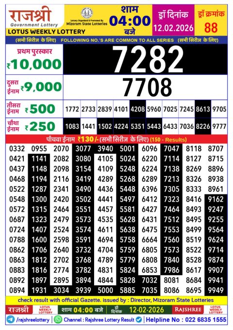 Rajshree Lottery Result Today 4 PM – 12 February 2026 – Live Draw & Winners