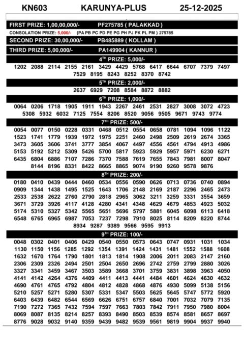 Karunya Plus Lottery Result Today 25 December 2025