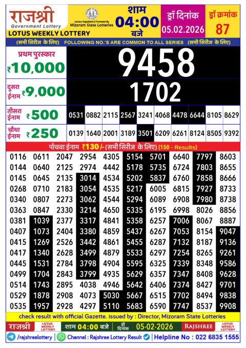 Rajshree Lottery Result 5:40 PM – 05 February 2026 – Live Draw & Winners