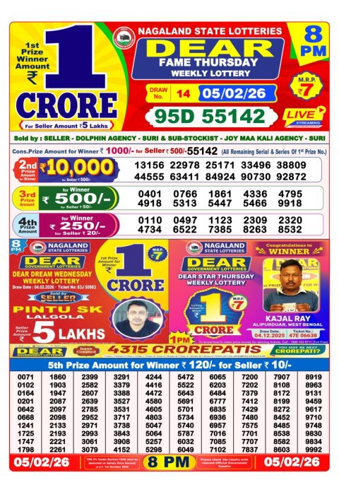Dear Lottery 1 PM Result Today – 05 February 2026 – Live Draw & Winners