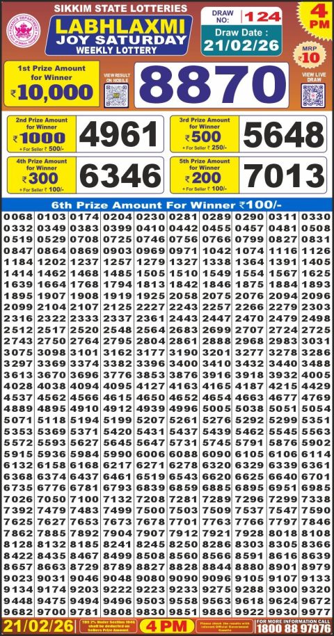 LabhLaxmi Lottery Result Today 4 PM – 21 February 2026 – Live Draw & Winners