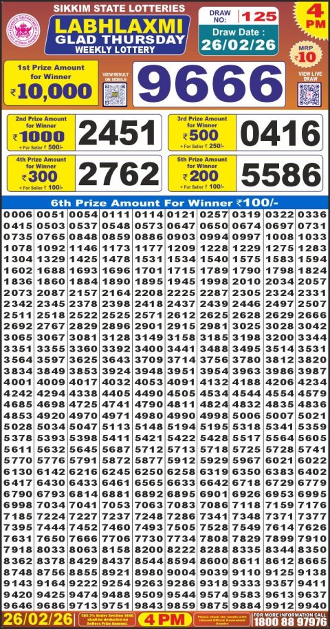 Dear Lottery Result 6 PM – 26 February 2026 – Live Draw & Winners