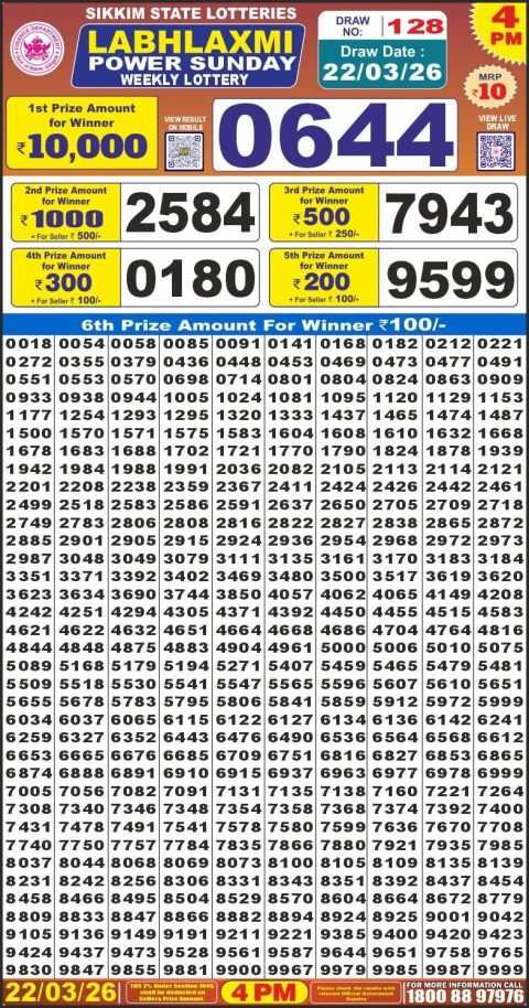 LabhLaxmi Lottery Result Today 4 PM – 22 March 2026 – Live Draw & Winners